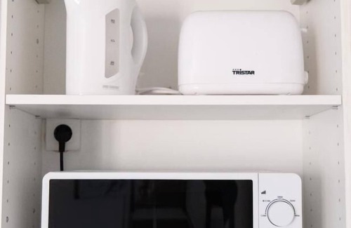 This 1-bedroom, 1-bathroom rental features a living room, a dining area, air conditioning, and a desk. Connect to the free WiFi, or get cozy in front of the Smart TV. Bathroom amenities include a hair dryer and towels. The kitchen is equipped with a stovetop and a refrigerator, as well as a coffee maker, a microwave, and cookware. And you can even travel light because you'll have access to laundry facilities. Other amenities include bed sheets, heating, a desk chair, and a dining table.