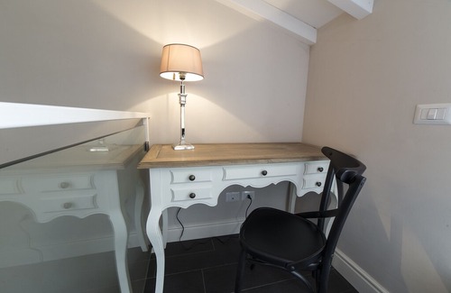 Posh, newly renovated loft-style apartment of approximately 50 square meters, fitted with elegant accessories, in a beautiful historic palazzo with belle-epoque glass lift. The apartment is on two levels and is composed of an entry foyer, a large living room furnished with a sofa done in elegant brown velvet, 2 gold velvet armchairs, table and chairs; kitchenette with an oven, contemporary induction range, dishwasher, coffee maker, and refrigerator/freezer; bedroom with a queen size bed and a large wardrobe and a lovely bathroom with sink, toilet, walk-in crystal shower and bidet at the entry level. On the upper level there is a pretty single bedroom with a little table with a lamp, useful also for laptop use. Beside this bedroom there is a laundry room, separed with a door, with a modern washer/dryer machine and there is also access to a tipical roof terrace with outdoor furnishing. Hair dryer as well as a full set of plush towels and bathrobes are provided for our guests. Iron and iron board is provided.