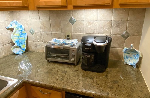 The living room is spacious and comfortable featuring a smart tv, light blocking curtains, and board games. The kitchen is fully equipped and easy to use with all modern conveniences including a full-size dishwasher, toaster oven, and Keurig coffee maker. Enjoy meals at the kitchen bar, the dining table, or the outside patio! The bedrooms offer either a queen or two twin beds to accommodate a variety of guest needs. The bathroom is roomy with counter space, storage, and a walk-in shower. There is also a washer and dryer so you can relax knowing you can keep your clothes fresh on your vacation. Beach towels, wagon, chairs and a cooler are provided for your beach excursions.