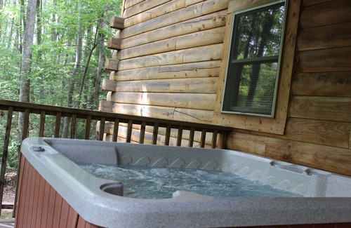 This cabin features a gas fireplace, TV with the basic Dish Network package, DVD, a spacious covered front porch deck with private hot tub and gas grill, dishwasher, washer/dryer and furnished with central heating and cooling.