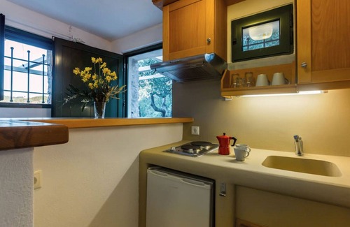 Stone built chalet with wide terraces and hand crafted stone benches, viewing the limitless Mediterranean Blue. In the night, enjoy the show that stars will have prepared for you..Your privacy in nature is what mostly matters here.. 750m from the sea!
