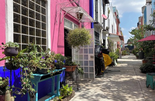 3 bedroom sustainable House in a traditional Mexican Vecindad decorated with Graffiti Murals with Beautiful Trees!