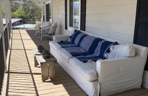 Our home is situated on a little hill, approx. 15,000 sq ft lot, overlooking the beautiful Lake Isabella and surrounded by beautiful scenery and nature. This unique 3 bed, 2 bath offers a large outdoor deck, cleanliness, high ceilings and tons of space. Our property is secured by a fence and a motorized driveway gate; plenty of space for boats, jet-skis, RV's, or work trucks. We are only minutes from the lake and a short drive down to Kernville and Lake Isabella.The Sycamore Suite is your home away from home with its high ceilings, open layout and a gorgeous 40' wraparound verandah.