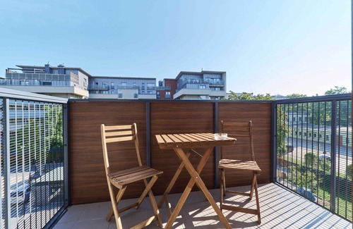 This comfortable flat in a modern housing estate offers a spacious balcony with garden furniture and a fully equipped kitchen with a dishwasher, induction hob and oven. Guests have access to a Smart TV, high-speed Wi-Fi and a parking space in the outdoor car park. Basic toiletries and towels are provided in the apartment. Located just 2 km from the Old Town, it is ideal for both tourists and business travellers.