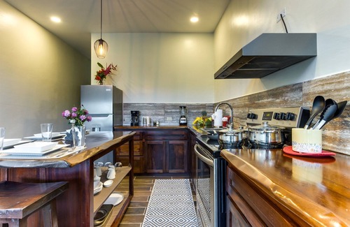 This upscale 2-bedroom, 2-bathroom apartment offers a peaceful escape with luxurious amenities, private balcony, and a cozy loft. It includes a fully equipped kitchen, spacious living area, and private balcony. Perfect for a relaxing stay in Placencia, this unit provides air conditioning, Wi-Fi, and a smart TV.