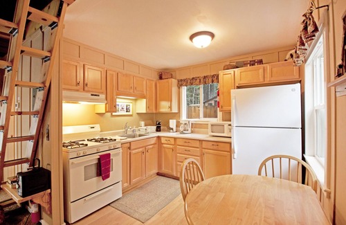 Inside, you’ll find a queen bed in the main bedroom downstairs and two twin beds in the upstairs loft, ideal for kids or extra guests. The fully equipped kitchen features a gas range, microwave, blender, and everything you need for home-cooked meals, from pots and pans to dishes and utensils, although there is no dishwasher.