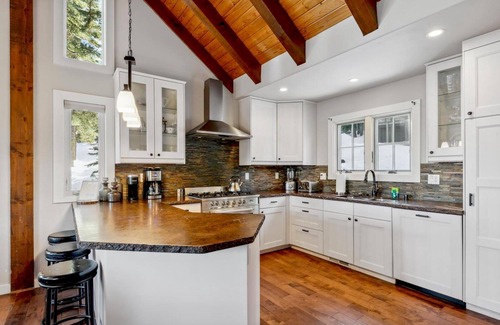 Relax at “The Treehouse”, a recently and beautifully remodeled Tahoe Vista retreat, and enjoy the Tahoe pines, mountain air, and filtered lake views. Inside you'll find a high-end kitchen, bathrooms, appliances and furnishings, without forgetting you're in the mountains. Relax in the hot tub after a day of Tahoe adventures and gaze up at the stars. The house is minutes from Lake Tahoe and Northstar California Resort.