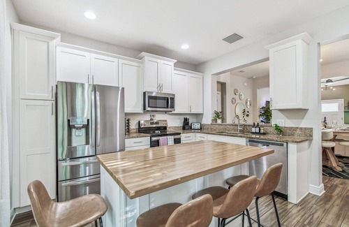 Bring the crew to this newly remodeled 3BR/2.5BA home that sleeps 10 across 8 comfy beds! With a pool & spa, pool table, ping pong, poker, mini golf, fire pit, and loads of games, there’s something for everyone.
