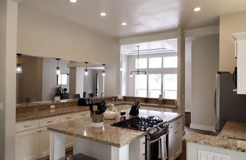 The exquisitely decorated 3 bedroom/ 2.5 bath ranch house comfortably sleeps up to 8 guests (up to 10 with the sofa sleeper). The open floor plan and great room make a perfect gathering spot for your family and friends. Outdoor living is what makes this home truly special! Enjoy morning coffee or evening cocktails on the large patio with views in every direction. Built-in BBQ, propane fire pit, and outdoor TV for watching the game! What more do you need?!