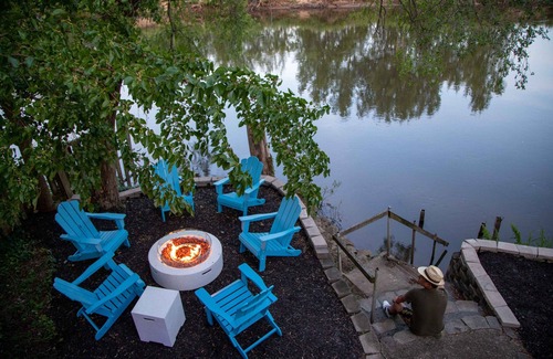 Escape the city hustle for a chic retreat on the serene Kankakee River. Our vibrant vacation home, just a stone's throw from Chicago & the Dunes, is a haven for groups & families. Revel in the quirky selfie walls, unwind by the fire pit, or fish off the private dock. Every corner is a conversation starter, from the colorful murals to the luxurious balcony. With high-end amenities and space for six, it's the perfect spot for a lovely reset. Book this incredible home for an unforgettable getaway!