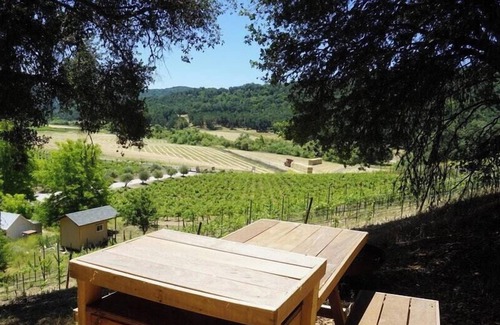 This beautiful and private getaway is located in the rolling hills of Paso Robles, CA with a winery just steps away! Your tent overlooks a working vineyard. Paso Robles wine country is known for its reds, most notably its Cabernet Sauvignon, Zinfandel, and Rhone-style varietals. Your stay in this area will be enhanced by the amazing wine and food culture, as well as the serene natural beauty of its farms and vineyards.