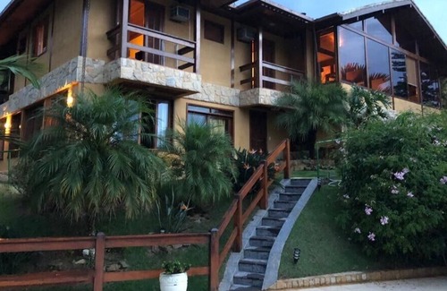 Chalet style, wood and masonry, 850 meters high, beautiful view, excellent security, located within the condominium Grão Pará, all glass room overlooking the mountains, 5 suites, fireplace, parking for 5 cars, pool, sauna, barbecue , wood stove and pizza oven, jacuzzi, games room with semi professional pool, is located on Teresópolis highway - Freiburg KM 4.5 behind Green Valley Condominium, commerce (10 minutes)