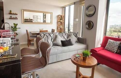 Fantastic apartment close to a lot of points of interest in Guadalajara. You will be 10 minutes by car from the Akron Stadium, 15 minutes from the Telmex Auditorium, 7 minutes from a couple of the best shopping centers in the city (Andares & Landmark). In addition, it is walking distance to San José Hospital. The apartment has 2 cofmy bedrooms, panoramic views to the city, 2 parking spaces and security 24/7