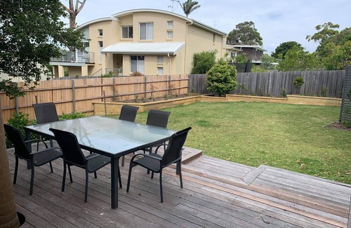 Outdoors: Outdoor shower (downstairs), Northern facing expansive deck with alfresco dining for 12, BBQ, two deck umbrellas provided for shade, perfect backyard for children to run around. Fenced, gates with child-proof locks. Downstairs (at rear), deck with seating for 6, Weber BBQ and external light for those evening BBQ's.