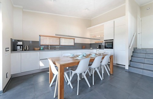 Fully equipped kitchen with dining table (including: induction hob, combination oven, Nespresso machine, milk frother, filter coffee maker, kettle, fridge/freezer, and dishwasher)