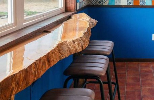 The indoor elements are a mix of styles and materials which blend to your enjoyment. An extraordinary amount of time was put into sourcing and building everything you'll see. An antique door from India welcomes you in, and the Mexican Talavera tile guides you from room to room. Each piece of the hand made wooden furniture was sourced from a local 120yo apricot tree. The stairs were built from an old downed elm tree and the hand rails from Grand Mesa aspen deadfall. The lamps are from Turkey. The soul of this place is inspired from abroad, but all the design and hard work and ideas are local to this Colorado native.