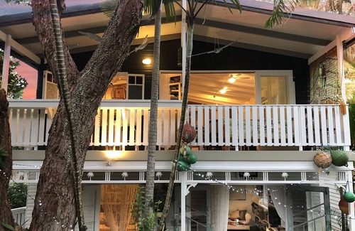 The Port Douglas Artists' Treehouse is situated in the heart of Port Douglas on a beautiful quiet street. Oozing good vibes, it is the holiday rental you will never want to leave. Breezy, spacious and laid back, you will shift into holiday mode the moment you arrive. The fully air-conditioned townhouse features four bedrooms (sleeping up to nine), two living rooms, two bathrooms, a fully self contained kitchen opening to the balcony, huge front deck, leading to a wonderful new built shared pool. Filled with major collections of inter/nationally renowned artists, as well as eclectic and stylish furnishings, (three tv's, unlimited internet, stereo, book collections, toys, beach items), the Port Douglas Artist's Treehouse finds the perfect balance between comfort, and cool, artistic contemporary style with an affordable price.