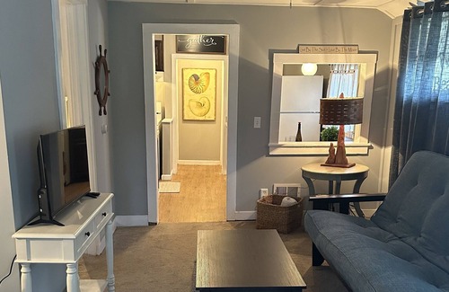 Kick back and relax in this calm, stylish, cozy cottage with so much to offer year-round! with a comfortable 1 bedroom queen size bed, furniture, designated work space, living room with a futon for 2, full equipped kitchen, front porch and an outside eating area
