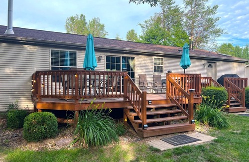 Enjoy the comforts of home in this four bedroom, two bath ranch style home. The Bears Den is located within minutes of everything Wisconsin Dells has to offer. Enjoy the peace of this private yard in this quaint community when you are done hitting the waterparks. The home has a large backyard and deck with ambient lighting, patio table and chairs, both gas and charcoal grills, game box with yard games for fun and a well-lit fire pit for your evening s'mores. The Bears Den sleeps a maximum of 10 people.