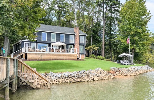 NEW LISTING! All new furniture, mattresses and appliances! Everything top of the line! Fall in love with the serenity of lakefront living on Lake Wylie - stylish, comfortable renovated retreat on a peninsula lot that can offer it all with views from every room and close by to charming downtown Belmont. The private, deep water dock on the main channel of lake wylie allows easy boating access with free lake toy usage of multiple paddle boards and kayaks. Look for our resident bald eagle in the cove but bring your own fising rods.