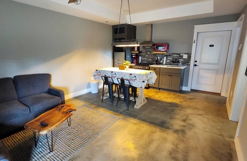 If you're looking for a great place to stay while enjoying Windrock Park, you have found your home away from home. The Big Red Barn was converted into a lodge that offers 1-to-3-bedroom units. Unit #6 is one of the newly completed 2 bedroom units offering 1 queen and 1 full size bed, all bedding linens included, open concept family room w/ sectional couch, coffee table and smart tv w/ Wi-Fi, breakfast table that seats 4, full kitchen with frig/freezer, gas range, microwave, coffee maker along with toaster, blender and all pots, pans and cookware needed to prepare any meals. private full bath with rain head shower, towels included, covered parking for 2 SXS's. The campground also includes a stocked catch and release fishing pond, just bring a pole. Located within 150 yards to trail G-23 and offer plenty of trailer parking. During the day enjoy the beautiful views of the private pond and surrounding mountain range, at night star gaze next to a campfire. Visit Indian Creek Camp and Ride to see what you've been missing.
