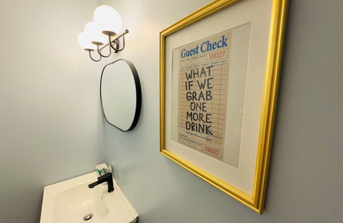 Our cocktail-themed guest room comfortably fits 3 guests and features amenities like a mini fridge, microwave, cable TV, Wi-Fi, and a refreshed bathroom area