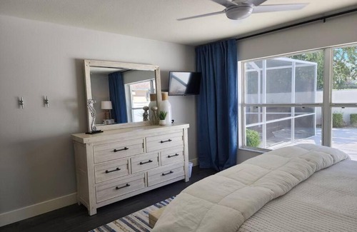 The Coconut Courtyard private pool, themed, modern offers accommodations in The Villages, 20 miles from Silver Springs and 27 miles from Lake County Historical Museum. This property offers access to a terrace and free private parking. The vacation home features an outdoor swimming pool and luggage storage space. With free Wifi, this 3-bedroom vacation home provides a flat-screen TV, a washing machine, and a fully equipped kitchen with a dishwasher and oven. The vacation home offers bed linen, towels, and laundry service. The vacation home has a picnic area where you can spend the day outdoors. Eustis Historical Museum is 28 miles from the vacation home, while Ferran Park is 28 miles away. The nearest airport is Orlando Sanford International, 60 miles from The Coconut Courtyard private pool, themed, modern, and the property offers a paid airport shuttle service.