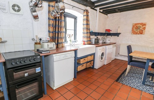 Three bedrooms: 2 x double (one with en-suite shower, basin and WC), 1 x single. Bathroom with bath, basin and WC. Ground floor basin and WC. Kitchen with dining area. Sitting room with sofa bed. Oil central heating. Electric oven and hob, microwave, fridge, freezer, washing machine, tumble dryer, dishwasher. Smart TV/DVD in lounge also with Freeview aerial. Guests need their own account for Netflix and iplayer apps and please log out before departure. WiFi. Fuel, power, bed linen and towels inc. in rent. Travel cot, highchair and stairgate available. Off road parking for 2 cars. Courtyard patio and furniture. Two well-behaved pets welcome at a charge of £25.00 per pet. There is an adjacent non accessible farm field that occasionally has rotating bulls or sheep. Sorry, no smoking. Shop 3 miles, pub 5 mins walk. Note: There is a Good Housekeeping Bond of £200.00. Note: Please refrain from charging electric vehicles at the property, there is electric charging points located at Corwyn Rhug Estate Farm roughly 5 minutes away.