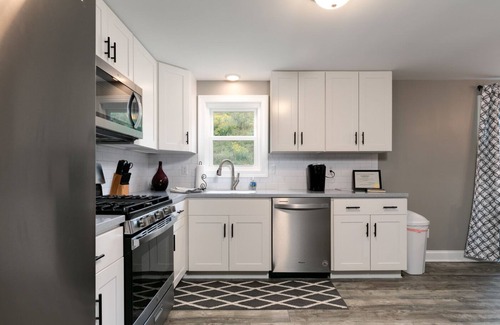As you enter, you’ll be captivated by the gorgeous, fully equipped kitchen featuring a Keurig, blender, dishwasher, and more! This space flows seamlessly into the cozy living room, complete with a large flat screen TV and views of the picturesque countryside. Step down to the Game Room in the walkout basement, where you can challenge your friends and family to the exciting games of Foosball and Air Hockey. Heading upstairs, you’ll find the second floor with a Primary Bedroom featuring an en-suite bathroom, ensuring your privacy. Two additional bedrooms offer comfortable accommodations for all guests. Central Air provides comfort on all levels of The Dodge House!