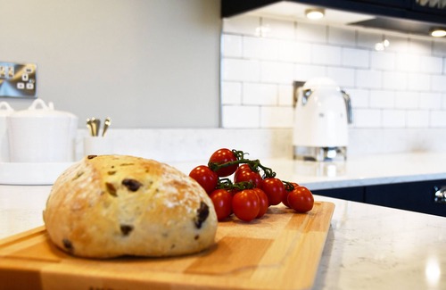 Amenities: Central heating with electric fireplace. Gas oven, gas hob, microwave, fridge, freezer, washing machine, dishwasher, kettle, toaster. Smart TV, WiFi. Bed linen and towels inc. in rent. Travel cot available. Off-road parking for 3 cars with EV charging port for an additional cost. Enclosed garden with patio, furniture and barbecue. One well behaved dog welcome. Sorry, no smoking. Shop 0.8 miles, pub 0.3 miles. Note: If you wish to bring a dog it must be mentioned at the time of booking. Note: If you wish the super-king-sizes to be made up as twin please let us know