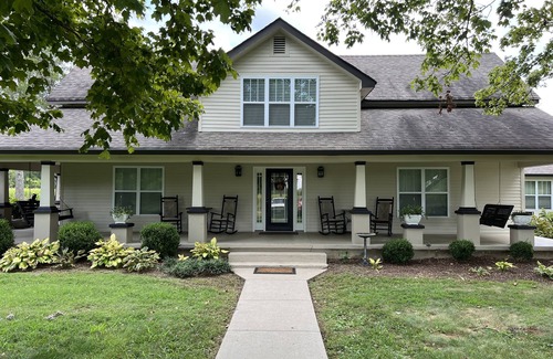 Relax with the whole family while enjoying the peace and tranquility of the country. Enjoy the wonderful breeze and views from the front porch while swinging in one of the swings or sitting in one of the rocking chairs. Home is secluded on 70 acres surrounded by fields of crops.