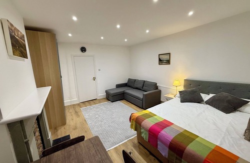 Welcome to The Finchley Lodge, a bright and stylish 3-bedroom flat in East Finchley, designed for families and groups of up to 10 guests. Enjoy two spacious bedrooms with a double bed and sofa bed, plus a cosy double room for restful nights. With a modern kitchen, inviting living area, and full bathroom, this flat combines comfort and convenience. Located near excellent transport links, it’s the perfect base for exploring London.