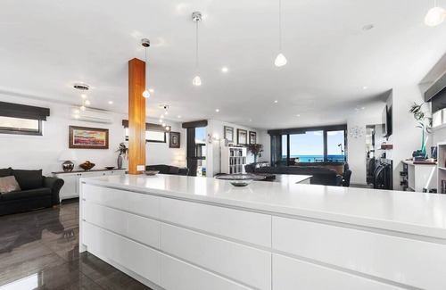 This wonderful coastal retreat has four beautifully appointed bedrooms – the master with ensuite and its own ocean views – together with a range of comfortable break-out areas in which to relax. Find yourself in front of the open fire enjoying a glass of red watching the wind whip the ocean, or taking in some well-earned Vitamin D on the deep balcony which encircles the house, or retiring to the quiet garden area where steaks are sizzling on the barbecue.