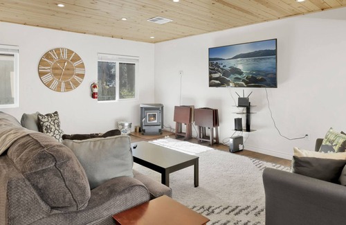 Welcome to The Getaway! This Bear City retreat is truly a gem, completely renovated from head to toe with your vacation stay in mind and located within minutes to Big Bear Oktoberfest, the farmers market, Community Market and Snow Play/Go-kart activities. This chalet is fully furnished with the comforts from home along with necessities to enhance your visit here in the mountains pairing modern mountain décor and relaxing comfort together for that perfect home away from home for a family vacation or group of friends.