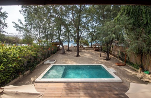 it features 4 bedrooms, a swimming pool and a private beach specially for you....forget about the news, take off your shoes, relax, smell the sea, feel the sand,...welcome to our villa, a little paradise on the island of Gili Trawangan, where you and your friends or family will spend some relaxing time snorkeling, cycling...
