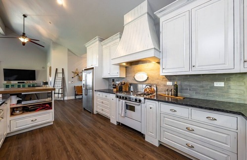 The Great Escape is outfitted to suit the needs of a modern vacationer. Beautiful hardwood flooring throughout! A fully equipped chef's kitchen provides a user-friendly space to cook a meal. A washer and dryer in the cabin are perfect for soggy ski clothes. Entertainment options like flat-screen TVs mean you can cozy up with a good movie next to the fireplace!
