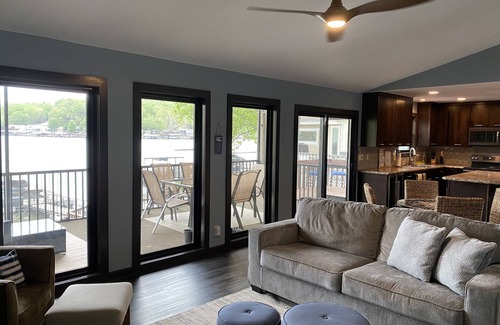 Welcome to the perfect place to spend a beautiful weekend at the lake! Nestled back in the quiet and family friendly Johnson Brothers Cove, you will find the gorgeously updated Guest House awaiting you. The home has a master bedroom, an awesome bunk room with three twin beds and one full bed, and a cozy pullout sleeper in the living room. The bathroom has a shower/tub, and the beautifully updated kitchen has everything you will need for you, your family, and your friends. Need to work during your stay, or just want to enjoy some downtime time watching your favorite shows or just staying connected? No problem! The house has fiber internet for your convenience . Enjoy the screened in porch with a beautiful view of the lake, or one of the two other uncovered deck areas. When you’re ready, grab the water mat and head down to the private dock for a swim! Don’t forget your fishing pole, because there are always fish to catch at The Guest House. When you’ve worked up an appetite swimming, fire up the propane grill down by the water and enjoy the beautiful sunset over the water. Significant weekly and monthly booking discounts offered. Please message for details.