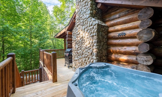 *** COZY, ROMANTIC & PRIVATE TRUE LOG CABIN / Pet friendly, with a creekside setting. Convenient location to nature, dining, river tubing, zip lining, train rides, waterfalls, shopping, etc..... or, if you just need calm, this is it.
