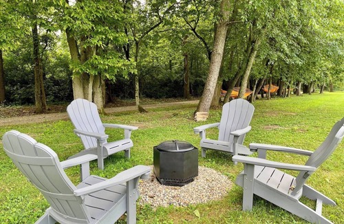 Relax with the whole family at this peaceful place to stay. Located in the country, just outside of town. This home is bordered by a county park which you are welcome to explore during your stay. Outside you can enjoy and gas grill, outside dining area and firepit area. Open concept inside with a beautiful kitchen, dining and living room area. Primary bedroom also has its own full bathroom. Washer and dryer are also provided for guest convenience.