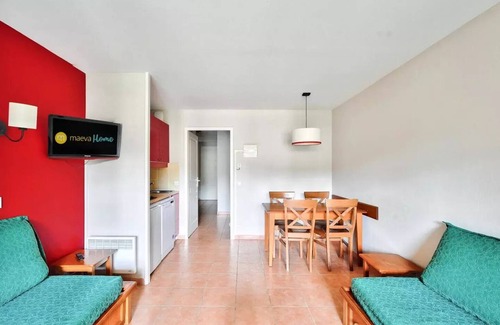 Details: Wi-Fi access : Free access Playground for children : Playground located within the residence with a swing, three mobiles and a house with slide (for children aged 2-7). Pets allowed : In some accommodation extra fee: 65 € / animal / week. 10 € / animal / day (stays from 1 to 6 nights). Baby Kit : Subject to availability: 1 baby folding bed (norm NF EN 716), 1 baby chair (from 6 months), 1 changing mattress, 1 stroller: contents may vary depending on the residences) - rates to be seen with reception Maintenance kit : Included - contents may vary according to residences: sponge, washbasin, multi-use product vial, flask of hand dishwashing liquid product, dishwasher tablet and towel. Bedding : In addition - contents may vary depending on the residences: drap-housse, sheet or duvet cover and pillowcase. Towels : Extra charge. Possibility of changing the daily linen available, ask the reception to know the rates. Beds made on arrival : Extra charge. Final cleaning : Extra charge. Must be carried out at the end of the stay, either by the guest or by paying the service at the pre-check-in or on arrival. Number of stars Car park Swimming pool : Open from May 19 to October. Heated Near airport : Bordeaux-Mérignac Airport #BOD (166.2 km), Toulouse-Blagnac Airport #TLS (121.2 km) Close trade Tourist tax (surcharge) : To be paid from your customer area, variable amount depending on the locality. Free for children under 18. Television : In all dwellings Animals not allowed kettle Coffee maker Deposit (in euros) : 500 Heating Cooked Smoke detector Floor Toaster Dishwasher Bedding : Extra charge. Final Cleaning : Extra charge. Must be completed at the end of the stay, either by the customer or by paying for the service at the pre-check-in or on arrival Microwave oven Number of bedrooms : 1 Number of pieces : 2 Number of bathroom : 1 Car park Cooking plate Fridge Dining Room - Seating Capacity : 5 Surface (m²) : 27 Television Terrace Dishes and cutlery View : Other Internet access