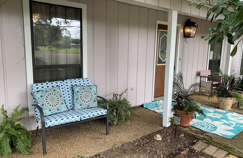 This newly renovated, three bedroom home, is bright with inviting Decour and very comfortably furnished. Just a short walk from picturesque downtown Fairhope. The great room opens onto an ultra modern fully equipped kitchen and bar . There is a convenient desk for working remotely, a cozy fireplace with a new pull out sofa bed. Two of the bedrooms feature a queen size bed and a king in the master. Plenty of closet room! Both sparkling bathrooms are freshly tiled and have new fixtures including a full body spray shower in the master. Set on a attractive lot in a quiet cul-de-sac. The home also has a back patio with a comfortable outdoor furniture and grill. Vacationing with others? Consider the recently renovated two bedroom “Silo House “ next door for additional guests. Sleeps 4+ a fold out twin bed. Ask for details!