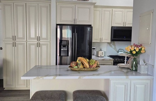 Your Lancaster adventure begins at this 2-bedroom; 2-baths fully renovated ADU. This unique place has a style all on its own. If what you are looking for is a cozy, tranquil retreat, this is it! This recently converted ADU (garage conversion) has a cottage/ French chateau aesthetic that makes the space feel like a warm hug. Every corner of this place exudes comfort and charm without sacrificing any of the modern touches nor amenities. It’s a space that invites you to kick off your shoes, curl up with a cozy blanket, and let the worries of the world melt away. The cozy space features 2 queen beds and 1 bunk bed, perfect for families or friends traveling together. Enjoy the convenience of a washing machine, hair dryer, and WiFi during your stay. With 2 bathrooms, including a bathtub, you'll feel right at home in this adorable retreat. You're sure to make fantastic memories with a stay at our place.