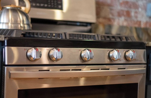 Stay right in the middle of Rogers Entertainment District with the loft of your dreams. Walking distance to anything in Rogers, plus two bakeries within just a few steps! Our oversized studio apartment features highly curated amenities, luxe Tempur-pedic king size mattress, espresso machine+French press, washer/dryer combo, a fully stocked kitchen, games, DVDs and plenty of space to relax after being out and about. The custom fabricated metal pocket door works better than black out shades so you can unwind from your night on the town. The oversized restroom is beautifully lit with a massive Paris mirror and oversized shower. If you love being in the middle of it all, this studio loft is for you. Please note the access into the apartment is a staircase, therefore the loft is not handicap accessible.