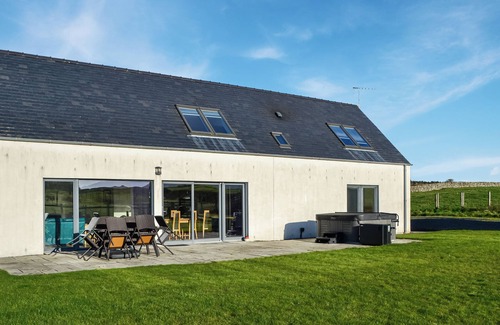 Shower Room: Cubicle Shower, Toilet. Electric central heating, electricity, bed linen, towels and Wi-Fi included. Initial fuel for wood burner included. Travel cot and highchair. Welcome pack. Back garden with patio and garden furniture. Hot tub for 6 (private). Private parking for 4 cars. No smoking.. Welcome to The Longhouse at Threave, a breathtaking holiday retreat that seamlessly blends contemporary design with the timeless charm of Scotland’s West Coast longhouses. Nestled amidst the serene countryside near the picturesque market town of Castle Douglas, known affectionately as "The Food Town," this contemporarily designed gem promises an unforgettable escape.