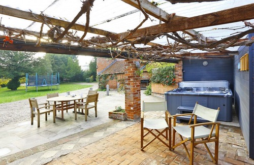 The Manor House is an exceptional property, offering boutique-style accommodation with the luxury of a hot tub and covered terrace for balmy evenings. The surrounding area is a nature lovers paradise and iconic Southwold just a short drive away. Size: Sleeps up to 10, 5 bedrooms. Nearest beach: Less than 10 miles. Nearest amenities: Less than half a mile. Pets: No pets allowed. Smoking: No smoking at this property. Rooms: 5 bedrooms (1 with en suite), family bathroom, shower room, playroom, hall, small sitting room, drawing room, dining room, kitchen, breakfast room. Beds: 1 four poster bed, 2 king-sized sleigh beds, 2 single beds, 1 set of bunk beds, day bed. Luxuries: Hot tub, trampoline, computer, radio iPod docks in each bedroom. Playroom with bean bags, games, coffee grinder. General: Woodburner, central heating, 3 TV's, 2 DVD players, iPod player, 2 Nintendo Wii consoles, hairdryers. Utilities: Rangemaster cooker, double oven and ceramic hob, sandwich maker, microwave, dishwasher, American style fridge/freezer, washer/dryer. Standard: Kettle, toaster Other: Bed linen and towels provided (not beach towels), stair gates, highchair, travel cot (not cot linen), books. Broadband/WiFI service - Excessive use may be charged at cost. Outdoors: Large mature garden with shrubs, covered terrace with hot tub, lighting and outdoor furniture. Parking: Parking for 4-5 cars on driveway. You may need to pay an Accidental Damage Deposit or Accidental Damage Deposit Waiver for this property. Where applicable we will contact you in good time before your holiday with further details and to take payment.