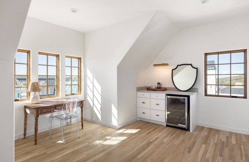 This Mediterranean-inspired four-story home in is a tranquil escape. Accommodating up to 16 guests, it offers a bunk room, a stunning living and dining room, a chef's kitchen, and outdoor amenities like a lake view hot tub and wood-burning fireplace. The third floor has three spacious bedrooms with ensuite bathrooms, and the fourth-floor penthouse provides 2 queen and 2 twin beds/writing desk/dining/living/full bath, and gorgeous lake views. A timeless lake house for creating lasting memories.