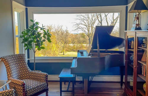 Our large historic home has many unique spaces to enjoy. The large living room has plenty of seating for conversation or game nights. The adjoining family has a big comfortable sofa where you can relax and watch TV. There’s a unique library that offers a baby grand piano and a nice place to get some quiet time with a book. There’s a large dining room that seats 10 to celebrate any family event as well as a more casual breakfast room to enjoy coffee and donuts in the morning. This room also seats 10. There’s a fully equipped kitchen for even the most discerning chef.