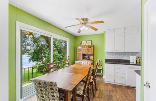 Welcome to your home away from home! Here, you'll find a spacious and bright living and dining area with large windows to let in natural light and provide great views of the lake.