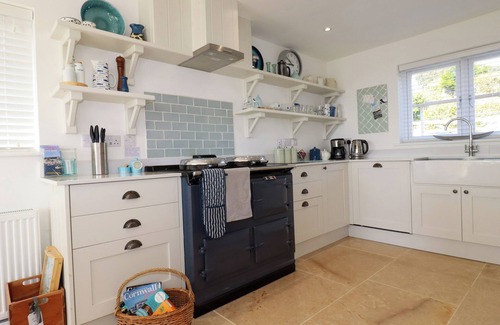 Amenities: Electric AGA cooker, induction hob, combi microwave/oven, freezer, washer/dryer, dishwasher, coffee maker, wine chiller, hairdryer. 2 x Smart TV, WiFi, selection of books and games. Fuel, power, and starter pack for woodburning stove inc. in rent. Bed linen and towels inc. in rent. Travel cot and highchair available. Private driveway parking for 3 cars. Enclosed rear garden with lawn, terrace, furniture, and charcoal barbecue. Sorry, no pets and no smoking. Shop 0.8 miles, pub 0.5 miles, beach 0.2 miles. Note: Steps down to property entrance, please take care. Note: 1 x Child's bunk room only suitable for children.