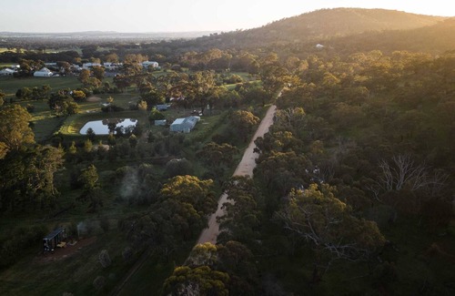 The Orchard Block is located at the base of Mt.Tarrengower, near the town of Maldon, where you can rest and enjoy comfortable accommodation with easy access to water, split air conditioning, a kitchenette, cooking equipment, and excellent bathroom facilities.